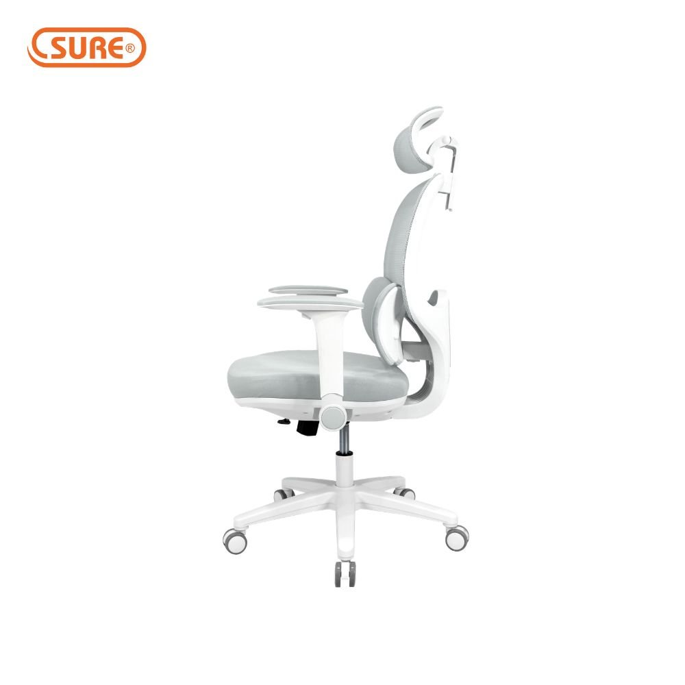 พนักพิงศีรษะ : วัสดุ PP ฉีดขึ้นรูปสีขาว ขนาด กว้าง 30.5 x สูง 16 ซม. หุ้มด้วยผ้าตาข่าย Mesh ระบายอากาศได้ดี พนักพิงศีรษะปรับได้แบบ 2D Adjustable Headrest สามารถปรับขึ้น-ลงได้ ~ 7 ซม. และปรับองศาการรองศีรษะได้ เหมาะในการรองรับต้นคอและท้ายทอย